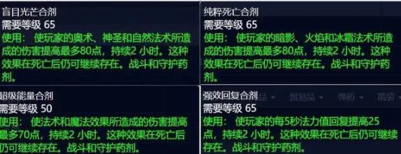 也就是说,玩家只能吃两瓶药剂或一瓶合剂,大部分60级药剂在70级有上位替代品。
