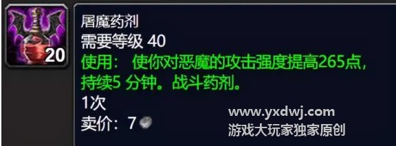 只有屠魔药剂是例外,70级版本的恶魔BOSS非常多,前期有卡拉赞王子和玛瑟里顿,后期海山黑庙太阳井几乎都是恶魔BOSS。