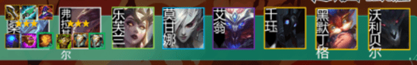 冰女和VN作为这个版本中最强的2张一费卡,赌冰女的这个阵容其实玩起来是有要求的,就是不能天谴丽桑卓,如果开局丽桑卓发的不多,我是不建议玩的,而且装备也必须对,不然秒不过VN的速度,就会被VN完爆而不是克制了,大后期克制魔女刺,但是过渡期因为要克VN,反而被刺客所克制,大后期怕黎明和小恶魔,但都可以上提莫和佛爷来反克制,所以过渡期最容易胡和吃分的还是魔女刺,但是有黑蓝BUFF的要求。