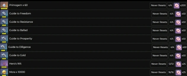砰砰魔球总动员的任务奖励有着240原石和摩拉、角色经验材料、天赋培养材料,以及活动名片。