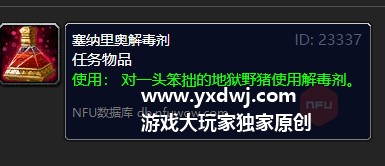 这个任务接到之后你可以在包里面看到一个塞纳里奥解毒剂。