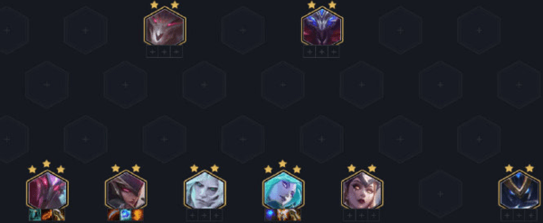 不灭狂雷 沃利贝尔、翠神 艾翁、永恒梦魇 魔腾、皎月女神 黛安娜、破败之王 佛耶戈、不祥之刃 卡特琳娜(飞雷神阵容主C)、诡术妖姬 乐芙兰、虚空掠夺者 卡兹克。