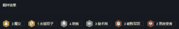 4刺客、3秘术师、3破败军团、3魔女、1永猎双子、2黑夜使者。