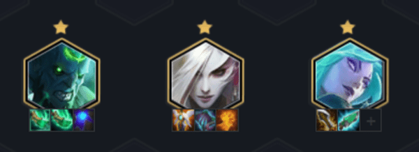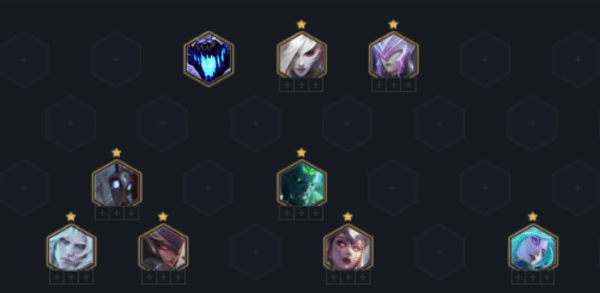这套阵容在8人口就可以成型,阵容的主框架是魔女刺客,在此基础上加入了无限控场的瑞兹,让瑞兹成为阵容的核心。冰女、妖姬和莫甘娜组成3魔女羁绊,在站位上让瑞兹享受到魔女的增益效果,瑞兹与卡特琳娜、佛耶戈组成3破败军团羁绊,获得攻击力和法强的提升,瑞兹与莫甘娜、千珏又组成了3秘术师羁绊,全体获得魔抗属性提升。