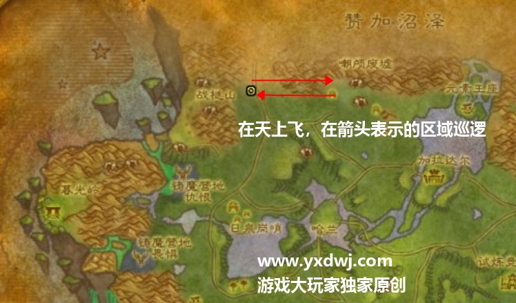 在地图上面给大家标出来了巡逻的轨迹,会在下图的红色区域之间循环飞行。