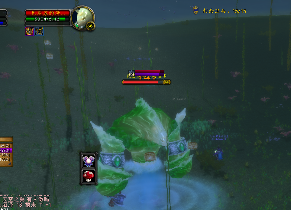 在水下我们可以看到一个巨大的绿色水元素,这个就是瓦图苏的污染精华。