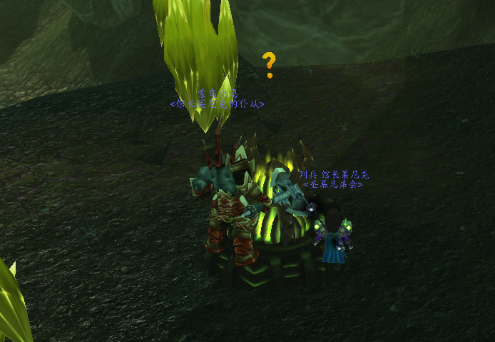 画面之中这个绿色的水晶就是军团联络器。戴上头盔对话就可以完成任务。