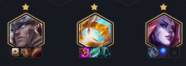 盖伦的装备推荐法师转职道具、反甲和龙牙,盖伦转职法师组成6法师羁绊,并且获得法术强度的大幅度提升,反甲和龙牙是最佳的防御装备组合,再配合盖伦技能的护盾,可以让盖伦在前排无比坚挺。维克兹的装备推荐珠光护手、科技枪和水银,珠光护手能够让技能产生暴击,科技枪释放技能回复血量和添加护盾,让维克兹的容错率提升,水银免疫控制,防止释放技能时被打断。婕拉的装备推荐鬼书和蓝霸符,婕拉的技能也是群体伤害和控制,鬼书给敌人添加重伤和灼烧,蓝霸符加快技能启动,从而打出控制效果。