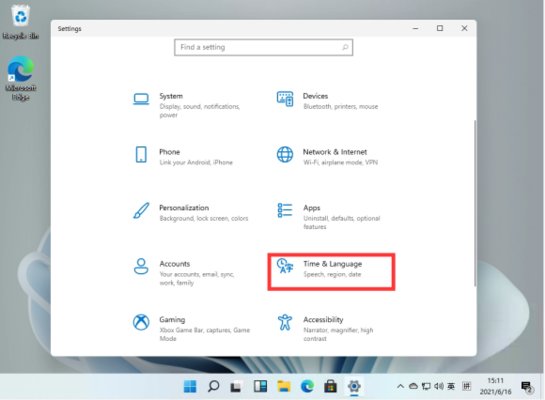 2、紧接着去找到“Time & Language”并点击,然后点击“Region & language”;