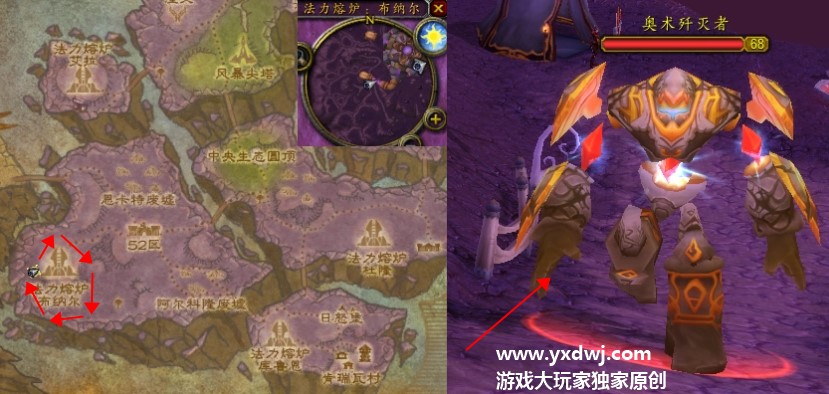 给大家在下面标出来了奥术歼灭者的样子以及巡逻路线: