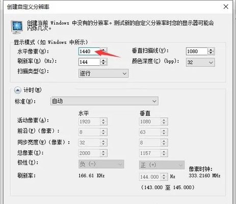 仅修改标注的水平像素 刷新率根据自身显示器修改。
