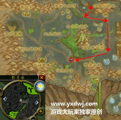 玩家们可以根据下图之中规划出来的路线到达任务坐标。
