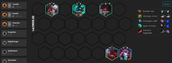 3阶段多种路线:单挂2游侠/单挂2法师/4斗3龙/3丧3龙2斗2法,路线很多,图中仅举例一种4斗3龙,3阶段主要还是靠龙蛋给的经济迅速接近7级,如果有幸白嫖到加里奥,果断提前跳7级蹭5龙的经济