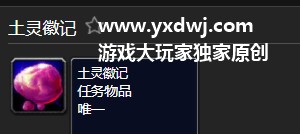 土灵徽记是这个任务是毒蛇神殿的开门任务需要的道具之一,还需要一个卡拉赞的夜之魇的道具。