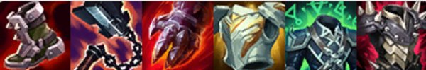 鞋子可以根据对手来调整。如果是AD上单就出忍者鞋,如果对手是控制型、AP上单可以考虑出水银鞋或者是三速鞋。根据对手来调整。神话装备选择渴血战斧,可以在前、中期增加蒙多的进攻能力,第二件装备直接转血手,可以有效的增加蒙多中期的对抗能力。