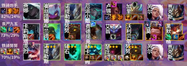 外服榜单向来都是强势冷门偷分的好东西,热度和国服错开强度还很不错,不过有时候要根据国服的环境具体优化调整,铁骑神盾兔子还没有测,这么高的9人口胜率感觉像是版本答案,铁骑破败兔子昨天已经分享了,版本偷分答案级阵容,铁骑游侠更适合克内战游侠和炮手,更适合环境偷分,但一定要有羊刀,黑铁亚索一直都是个很好的烂分阵容,斗丧亚索刚开始很好偷分,但是丧尸热门之后找不到丧尸保持不了前期的强势就废掉的。