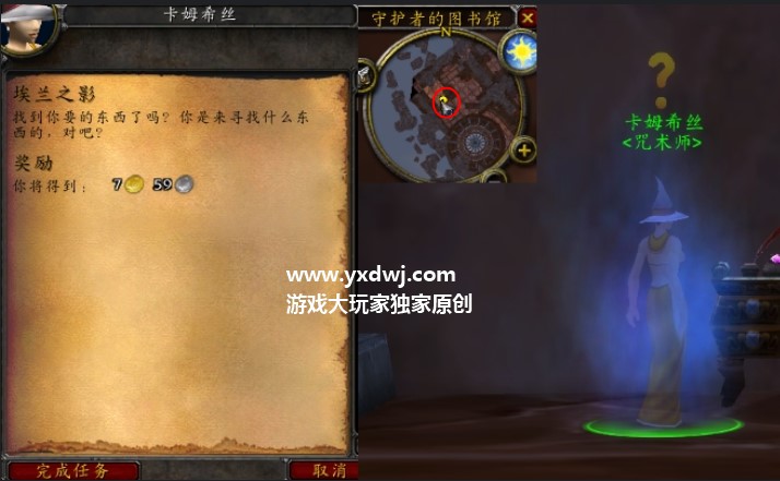 玩家们打完之后就走到背后的图书馆就能够交这个任务了。
