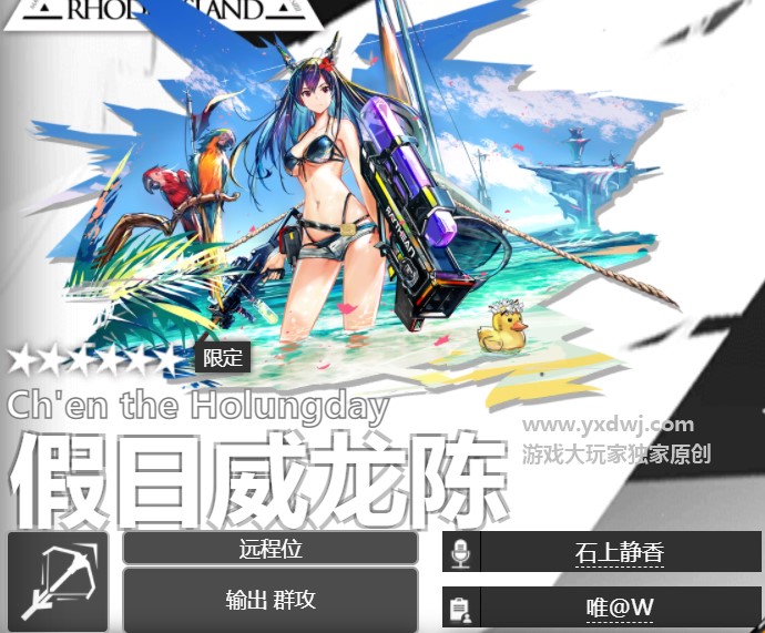 假日威龙陈是明日方舟最新活动的一个限定干员,新干员上线之后肯定会有很多玩家前去抽卡,而且活动每天也会送很多抽卡的资源,相信很有一部分玩家是直接把这个角色拿到手的,小编也给大家带来了这个假日威龙陈新角色的各种材料,希望能够帮助玩家提前预览一下材料的内容,具体如下: