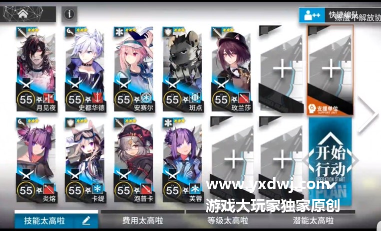 阵容如下,玩家们可以使用自己类似职责的高星级干员调整阵容: