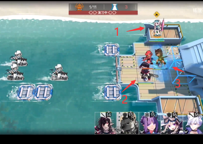把重新部署的干员在右边的平台上摆好。