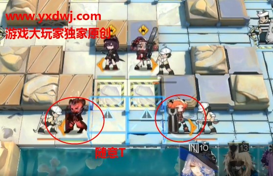 在下面放两个T,普通盾或者奶盾都可以,用自己练度最高的。