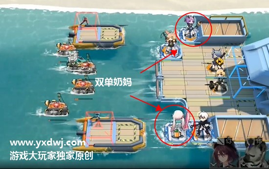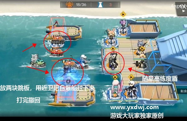 然后再一波自爆船来之前再图中的两个地方放置踏板。