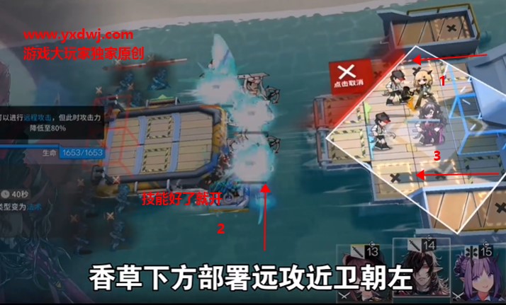 然后放置史尔特尔在下面的地方朝上,技能好了就开,打完四个大怪就直接撤回