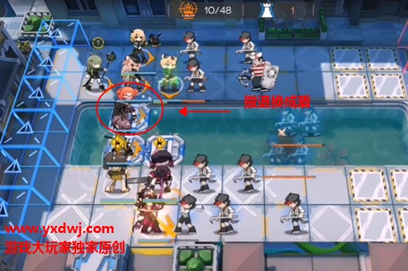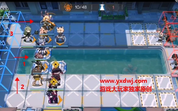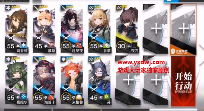 在分别的位置放置好单奶和群奶,夜刀的位置放置一个挡2的高练度远卫更好。