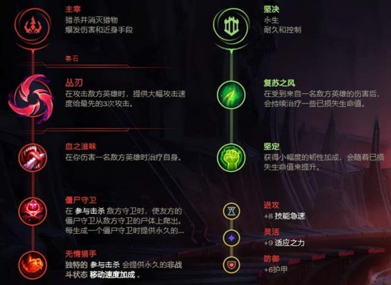 丛刃可以提供爆发性的攻速,让派克可以更高效的获得瞬间爆发的能力。是现在辅助派克比较主流的基石符文的点法。血之滋味可以提供治疗、续航的效果。僵尸守卫可以有效的配合排眼刀来使用。底层符文点无情猎手,可以增加派克的机动性,让派克中期能更好的游走带节奏。