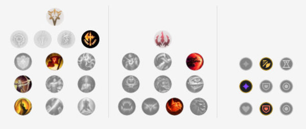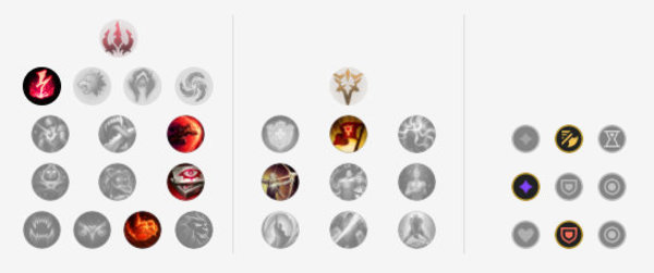 主系方面主打爆发,电刑配合我们的普攻和技能叠加触发提供一段额外伤害,猛然冲击突进可收益一定的穿透效果,眼球收集器随着击杀守卫永久提升我们的自适应加成,无情猎手随着击杀永久提升我们非战斗状态移速。