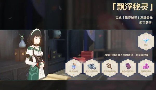 这个委托派遣任务其实和当初调查龙蜥差不多,需要玩家派遣角色,并且去特定的地点击败漂浮灵,送原石的活动。