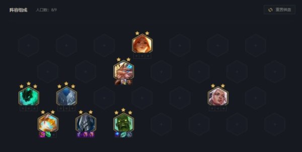 到了8人口继续大搜一波,主要拿2星的大眼、芮尔、武器、加里奥,4费卡全部到手之后阵容即可成型。接下来慢慢存钱找3星大眼即可。