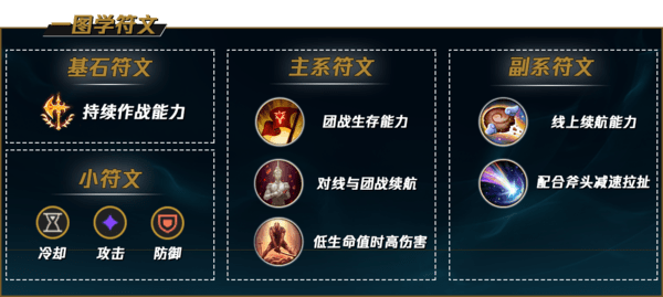 因为奥拉夫技能自带攻速,因此比起攻速更需要技能急速去放更多的Q和E,因此奥拉夫小符文不需要攻速。