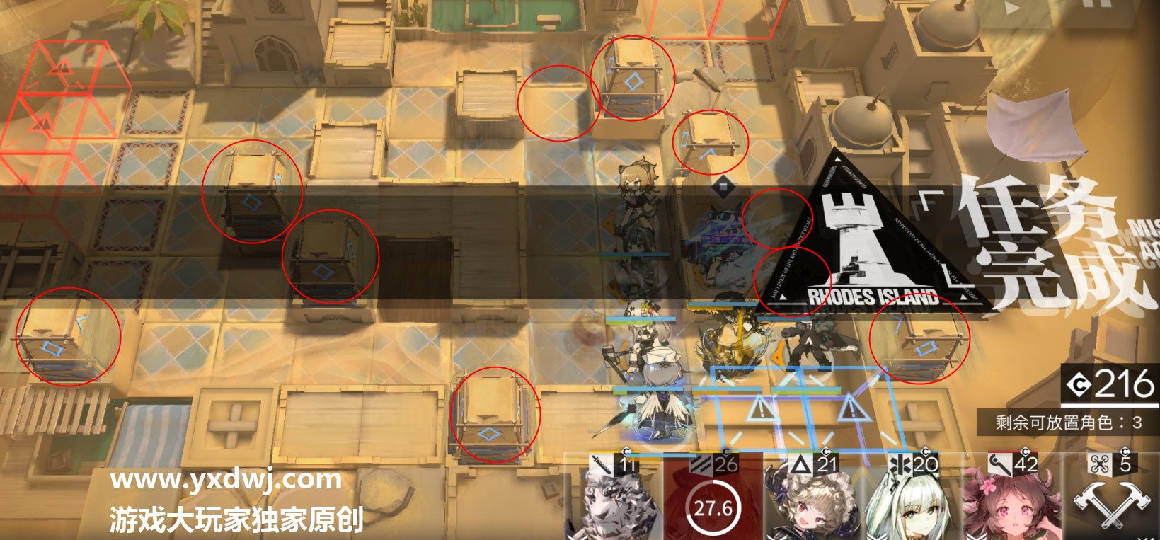 玩家们根据下面的位置摆放干员: