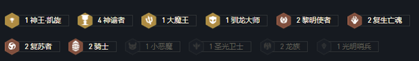4神谕者、2黎明使者、2复生亡魂、2复苏者、2骑士、1神王凯旋、1大魔王、1驯龙大师。