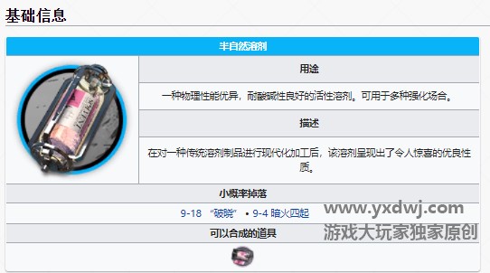 半自然溶剂是明日方舟在第九章加入的最新的蓝色材料之一。