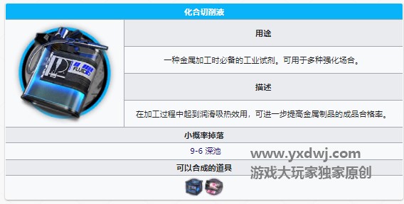 化合切削液是明日方舟在第九章加入的新材料之一,想要合成两个新的大材料都需要这个。