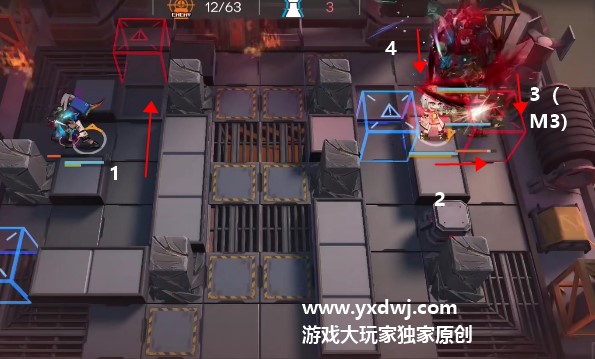 右上角凯尔希和42堵门,准备boss出来打掉开技能第一条命。