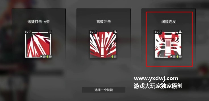 我们打这个需要带3技能【闭膛连发】,技能7级就可以打了,不需要专精。