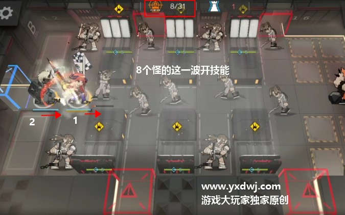 重犯来了直接开技能,如果没有专精,就用上下两个装置控制一下。