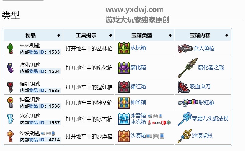 前代主机版和3DS版的钥匙不会直接掉下来,而是必须由生物群落钥匙模具制成。
