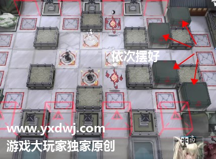 上来先按照下面的位置依次摆放四个箱子,把箱子都摆好在对应的位置。