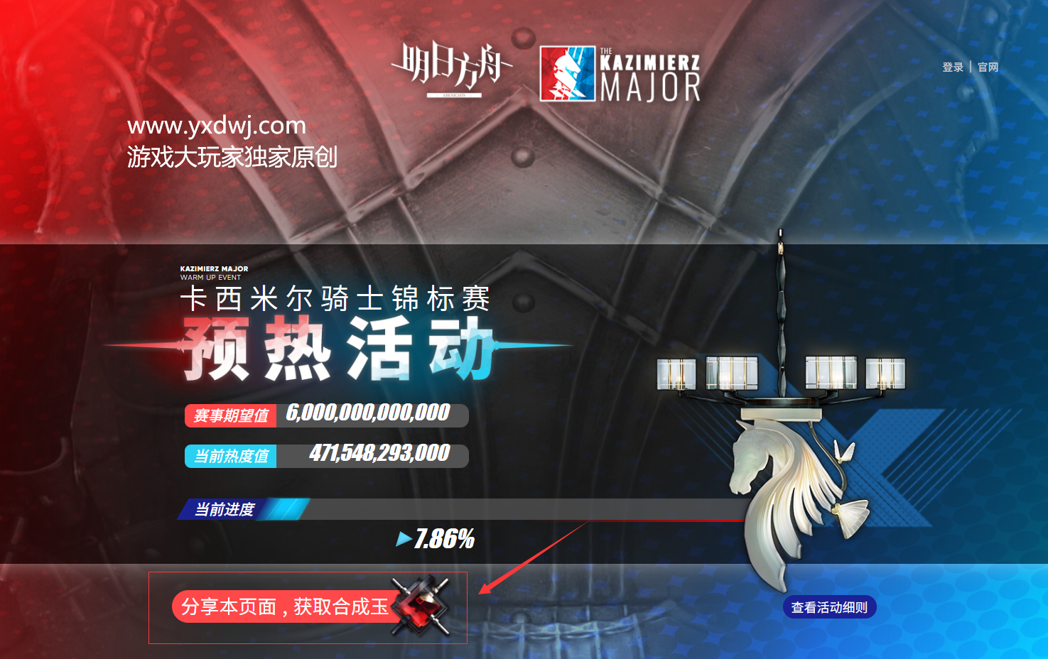 玩家们进入页面之后可以通过分享的模式获得合成玉奖励: