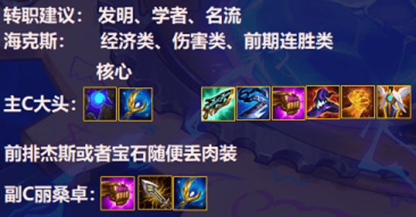 学者机关枪这个套路主要是利用学者和社交名流的回蓝,可以做到每秒回10蓝,加上蓝BUFF,大头可以做到一次普攻就放一个技能,配合大头每三次施法就三倍的特点,实现狂轰乱炸的法术伤害,整体质量拉起来就足够强,装备也属于较低序列,玩起来也特别快乐。