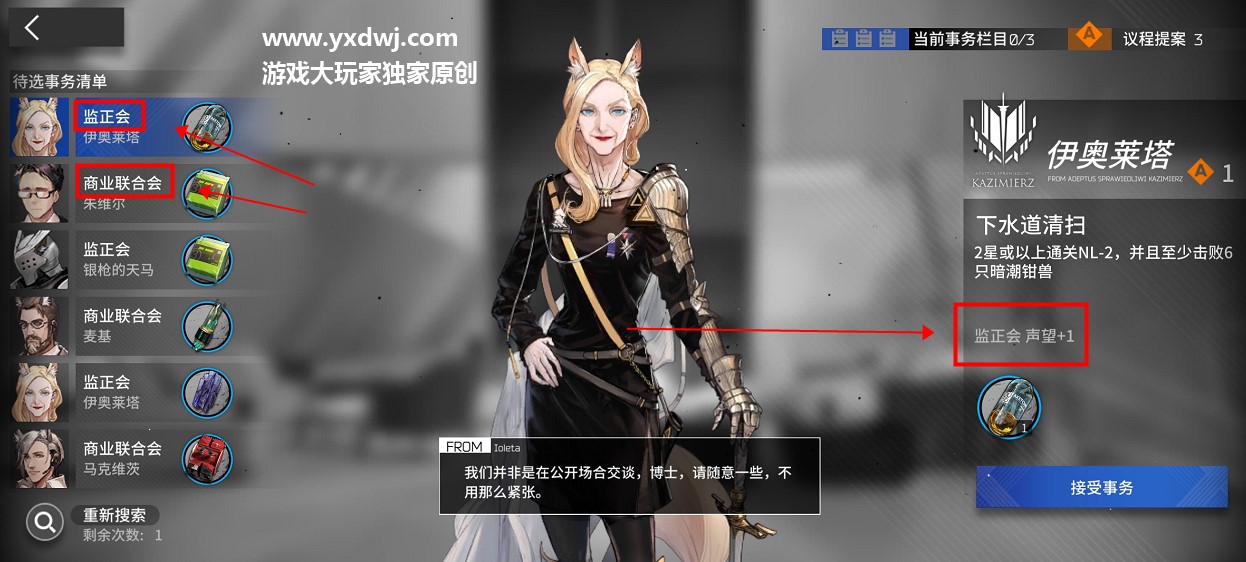 完成对应监证会势力的任务,可以获得监证会势力的声望点数