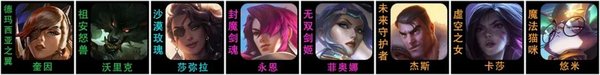 奎因、狼人、莎弥拉、永恩、剑姬、杰斯、卡莎、猫咪