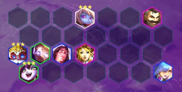 这套阵容就是一个铁王八阵容,对“拖”字决的完美诠释,还有一点大家注意,虽说有3枚棋子可追三星,但这不是赌狗阵容,这套阵容现在吃分非常稳定,可打版本大部分阵容,暂时没发现有大克制的天敌阵容遇到永恩的时候一定主要布隆去抗,其他棋子后两排反向站位,否则容易翻车,遇到黑白法的时候大头躲好拉克丝的技能就好,可用机器人璐璐两面吸引火力。