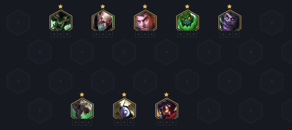 中期则继续补充扎克、冰女、蒙多或厄加特等炼金科技英雄,去组成5炼金科技羁绊,中期需要尽快去升到8人口,在8人口时搜出杰斯和维克托后才能稳住局势,在站位中要让图奇对着敌人后排人多的地方即可。