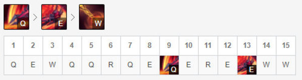 Q技能是我们主要的输出技能,技能有三段释放,前两段外圈范围以及第三段内圈范围具备额外伤害,且有一定的击飞控制效果。E技能则是剑魔的辅助输出技能,释放技能剑魔可位移一小段距离,同时可刷新剑魔的普攻后摇,除了AEA这种基础连招外,剑魔E技能更多的是配合Q技能,打出Q技能特定范围的额外伤害。