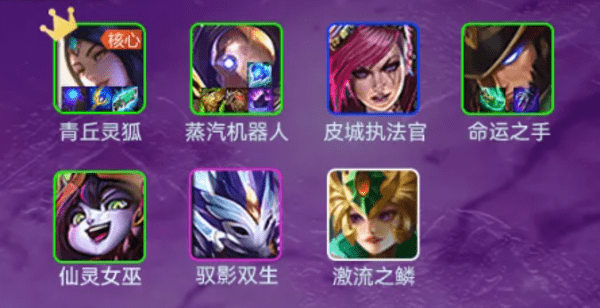 装备棋子比较胡就可考虑这套阵容,正常升级人口,不需要卖血拿装备,2-1升4,2-5升级5人口。阵容直接考虑3法+2秘+2狂野,机器人开局抓人搭配青丘灵狐技能开局就能秒一个敌方棋子,而仙灵女巫与激流之鳞能极大保证阵容续航。装备上先考虑青丘灵狐的青龙刀或蓝霸符,防装直接合成给予机器人。